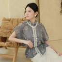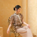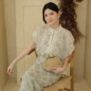 - Dress panjang berbahan lace tipis dengan motif floral bordir yang lembut
